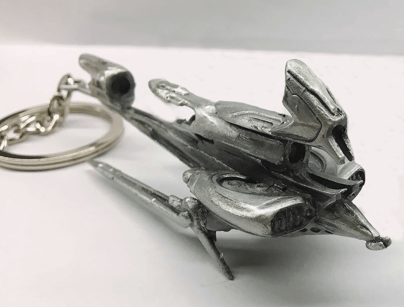 Admittedly much easier to bring with you than your actual Railjack, this die-cast metal keychain is sure you to give your keys a Sigma Series flair! Length of ship: 3.5 in. Total length with keychain: 5.9 in.